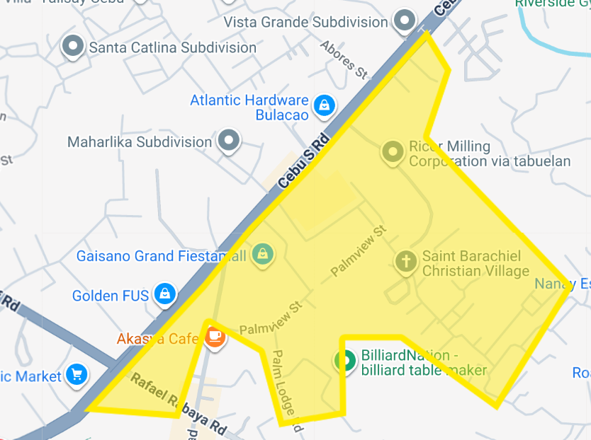 Areas Affected: | Portion of Bulacao, San Isidro & Tabunok, Talisay City, along portions of Cebu South Road & Mansueto Road, Rabaya Compound, St., Deiparine St. Neigborhood St., Rabaya St., Sangi St., Tabulasan St., Victoria St., & San Isidro St. |