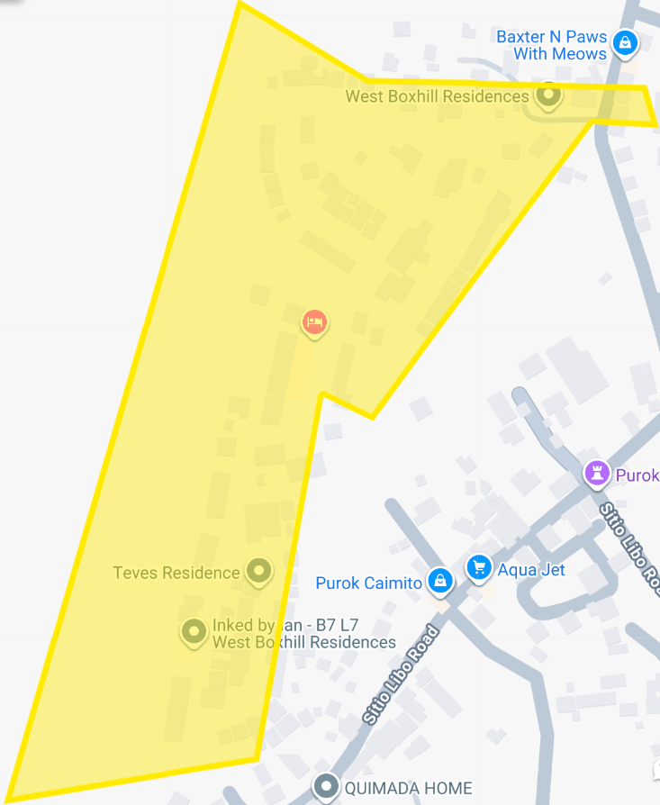 Areas Affected: | Portion of Mohon, Talisay City, along portions near West Box Hills Residences. |