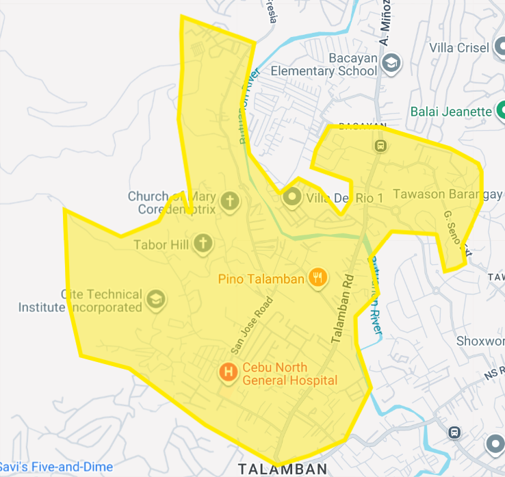 Areas Affected: | Portion of Bacayan & Talamban, Cebu City, along Talamban Road and A. Minoza St. |